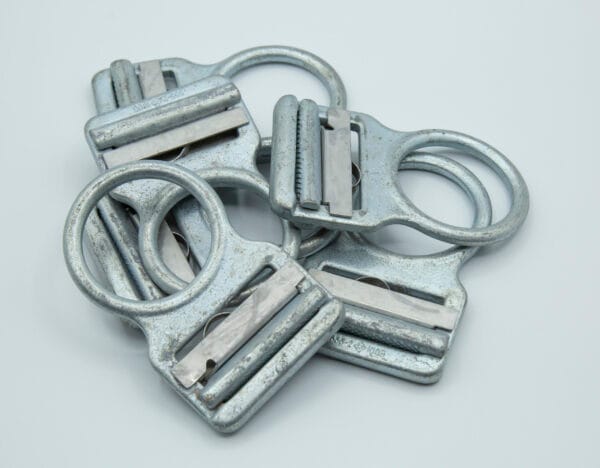 Anneau rond avec réglage autobloquant permettant une jonction entre le harnais et la cuissarde.